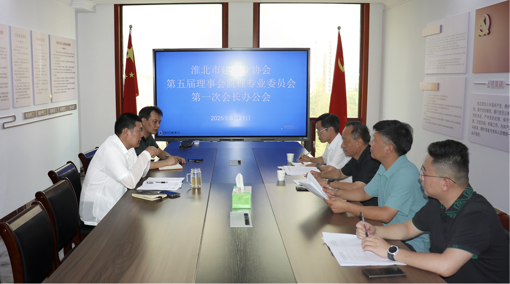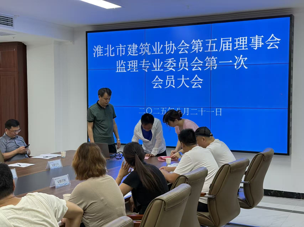 2025 年 8 月 21 日,淮北市建筑业协会第五届理事会监理专业委员会第一次会员大会在市建协第二会议室隆重召开。本次会议由市建筑业协会驻会副会长黄士勇主持,市建筑业协会秘长吴信同及 23 家监理专业委员会会员单位代表出席了会议。