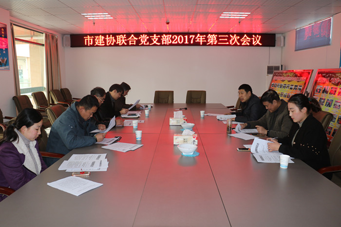 2017年3月13日下午3时,市建筑行业协会联合支部委员会在协会会议室召开了2017年第三次会议?;嵋橛芍Р渴榧腔剖坑轮鞒郑宓吃辈渭恿嘶嵋?。