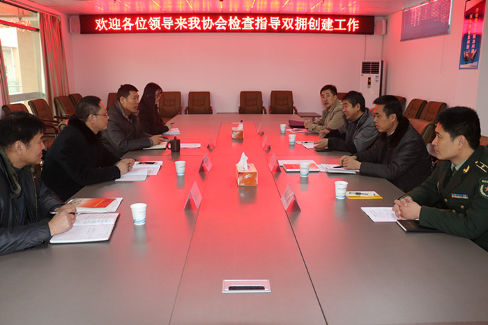 2月8日下午,市双拥办主任党组成员任勇,杨文忠,市目标办主任薛军,军分区正营职干事魏化龙来我协会检查指导双拥创建工作。