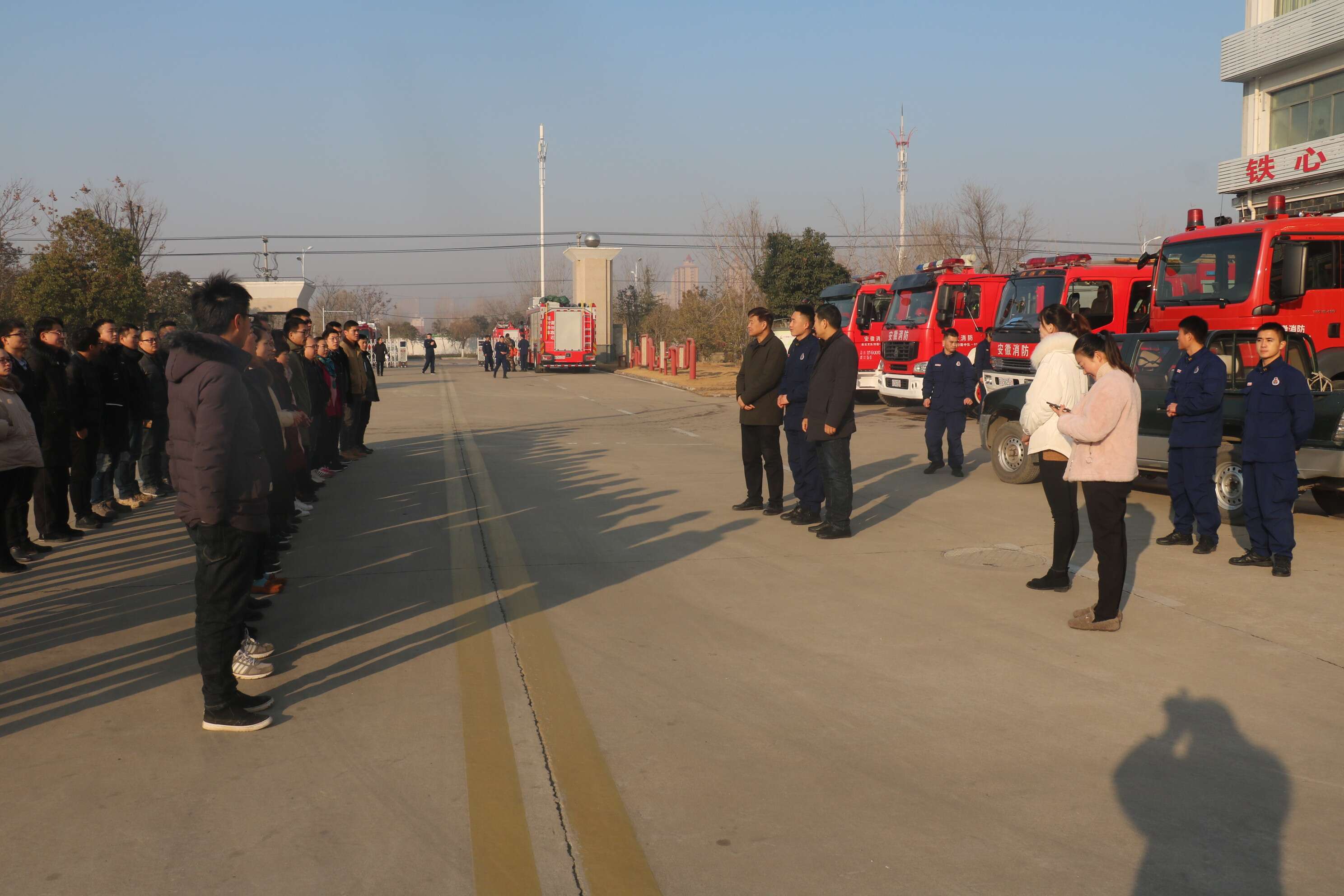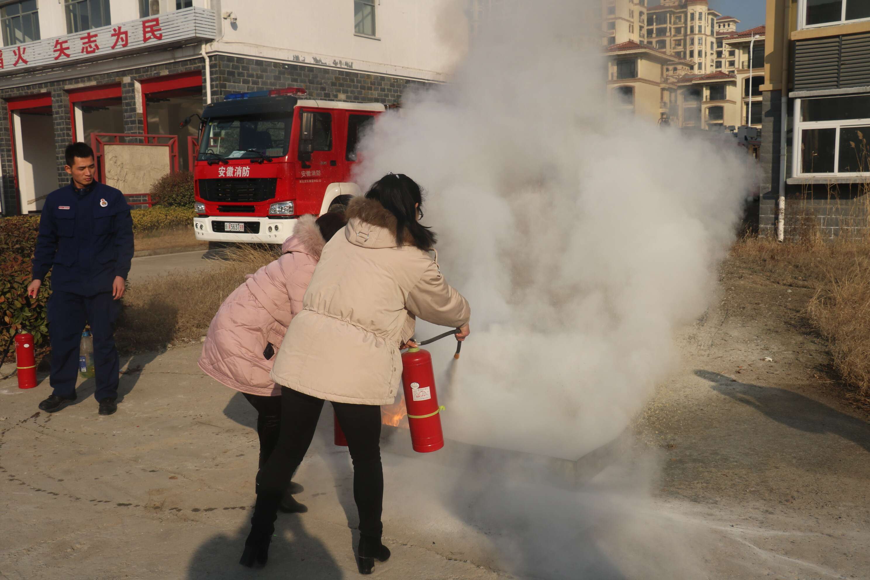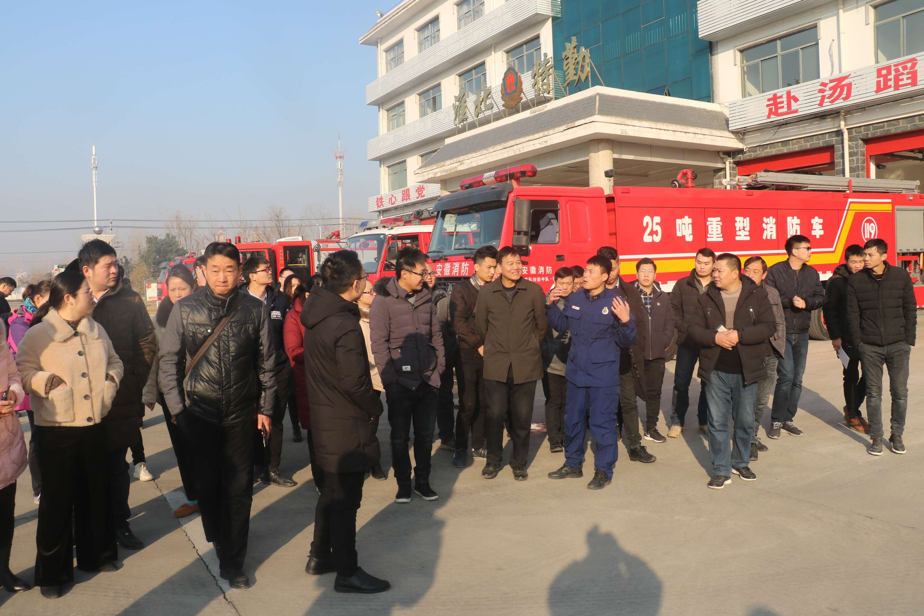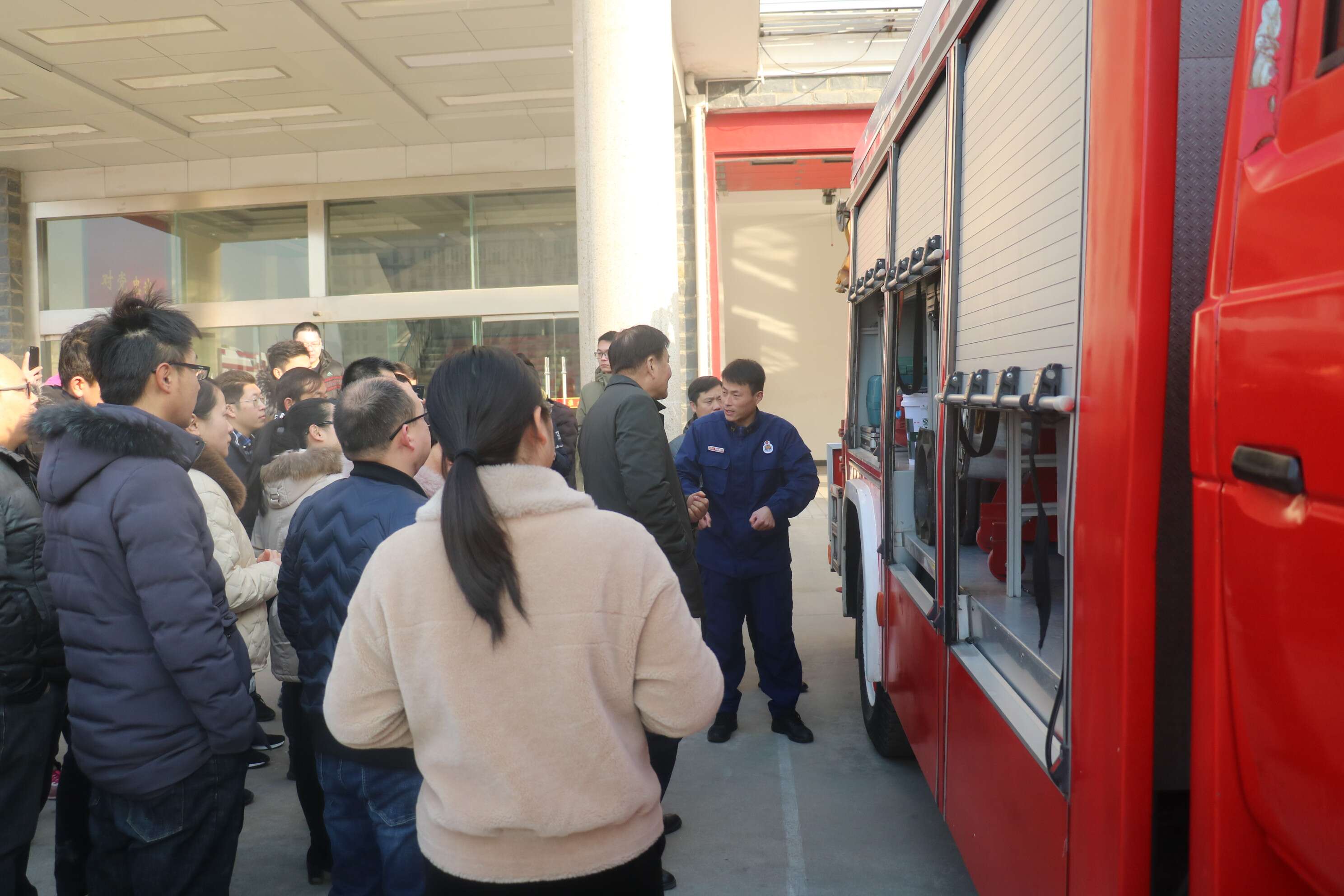 本次消防演练分消防车构造讲解、参观营房、灭火器使用现场示范、模拟火情组织灭火等多个环节。
