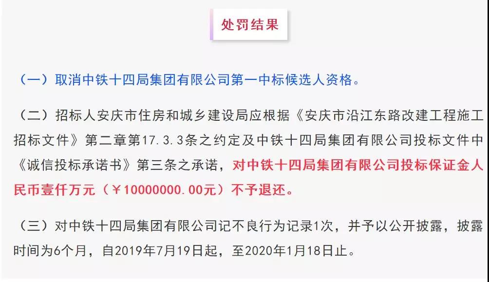 根据公示,原第一中标候选人为中铁十四局集团有限公司,中标价1717810893.99元;第二中标候选人为中铁隧道局集团有限公司,中标价1722369526.29元。