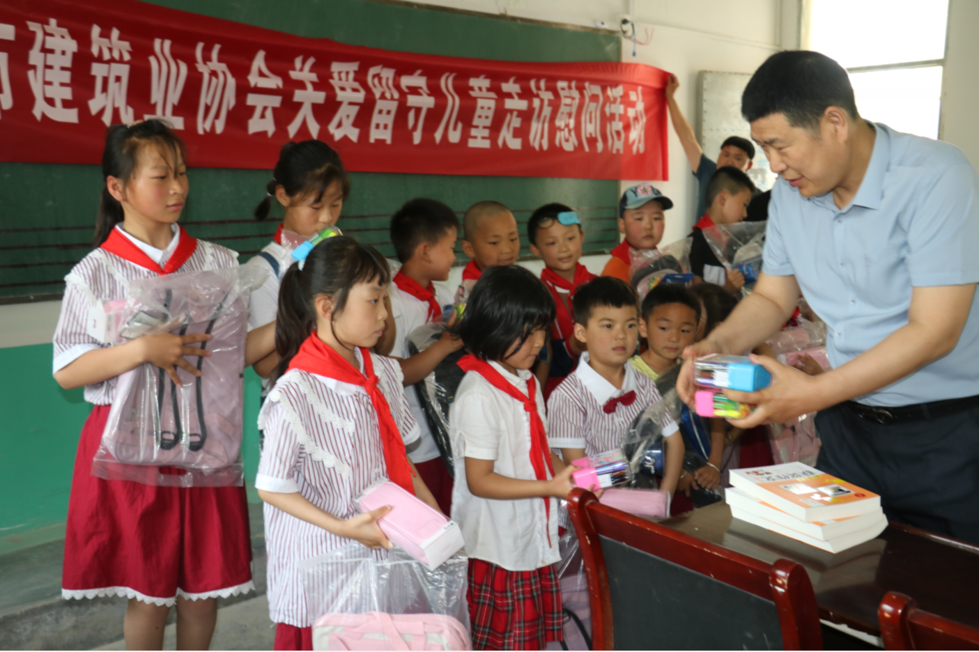 “六一”儿童节即将到来之际的5月31日上午,淮北市杜集区白顶山小学迎来了一批特殊的客人,他们是来自淮北市建筑业协会秘书处的同志们,为关爱山区留守儿童,让山区的孩子能在孩子们的节日里也感受到来自社会大家庭的关爱和温暖,过一个开心、温馨的节日,为孩子带来了书包、文具、图书、画笔等学习用品。