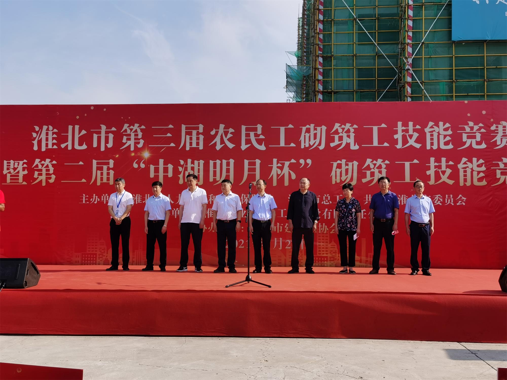 7月24日上午,在淮矿公司“中湖明月”项目所在地举行了淮北市第三届农民工砌筑工技能竞赛暨第二届“中湖明月杯”砌筑工技能竞赛开幕式。