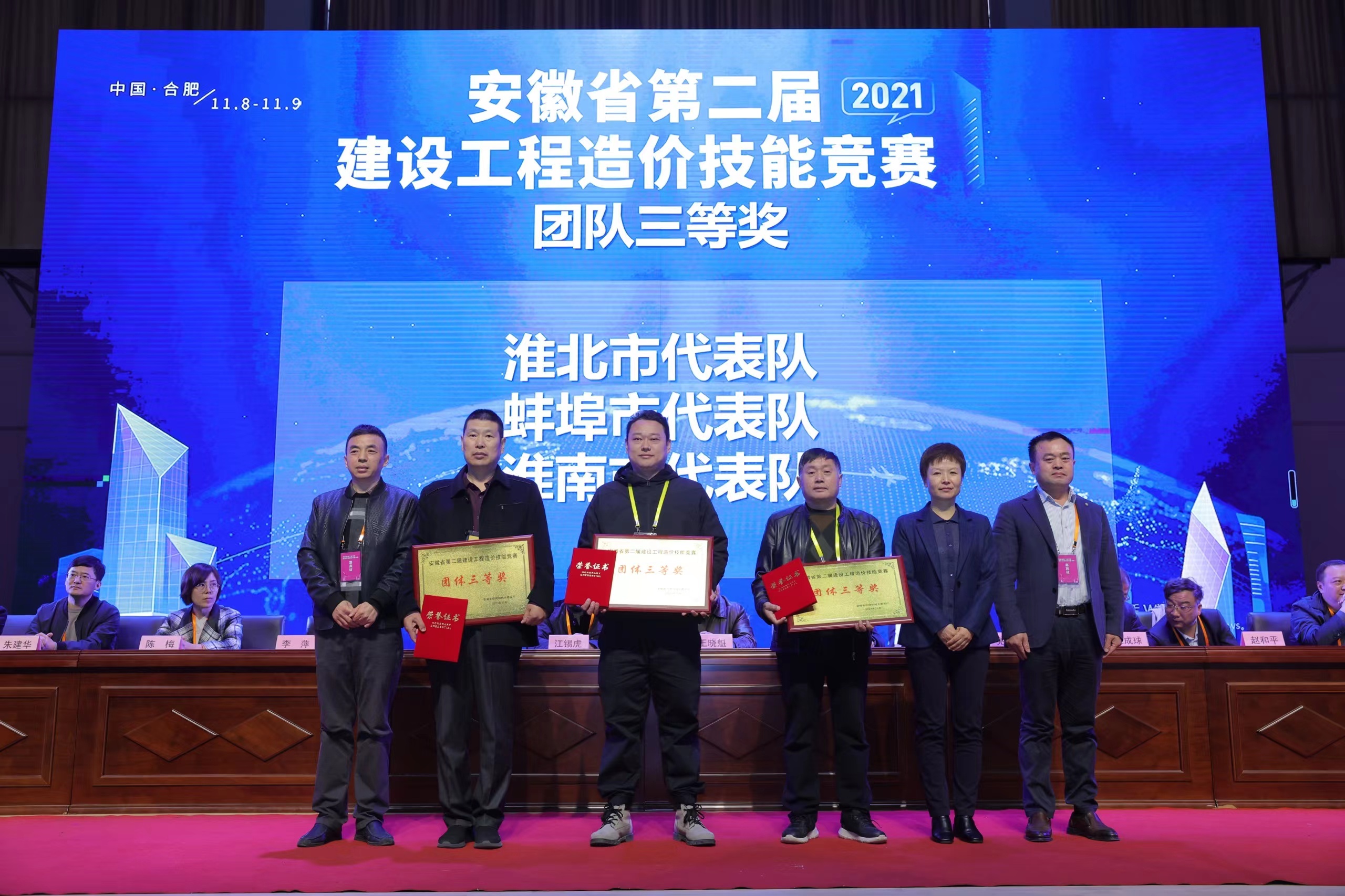 赛场上面对强手如林的竞赛对手,我代表队选手凭借扎实的理论功底和丰富的实操经验,临场不惧,勇于拼搏,过关斩将,经两日的比拼,在本次全省决赛中再创佳绩:安徽中汇建银建设项目管理有限责任公司聊宗军获得土木建筑专业个人二等奖,安徽远信工程项目管理有限公司淮北造价分公司张文静和安徽中汇建银建设项目管理有限责任公司李顺获得安装专业个人三等奖;淮北市代表队荣获安徽省第二届建设工程造价技能竞赛团体三等奖;作为协办单位,淮北市住建局和淮北市建筑业协会荣获最佳组织奖。