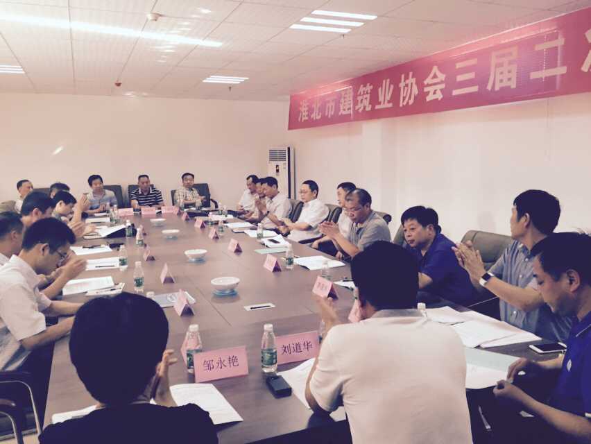 2015年8月30日下午在协会会议室召开了淮北市建筑业协会三届二次常务理事会,应到会的常务理事会单位21家,实际到会20家(其中淮北市建设监理有限公司因事缺席)。