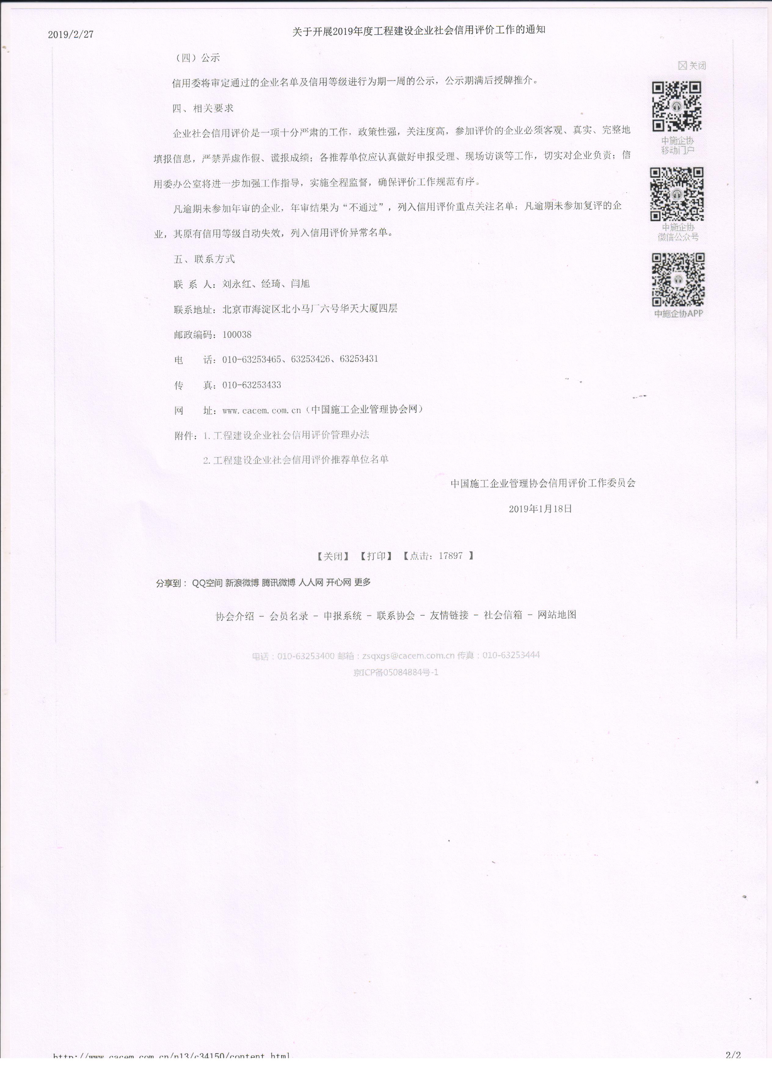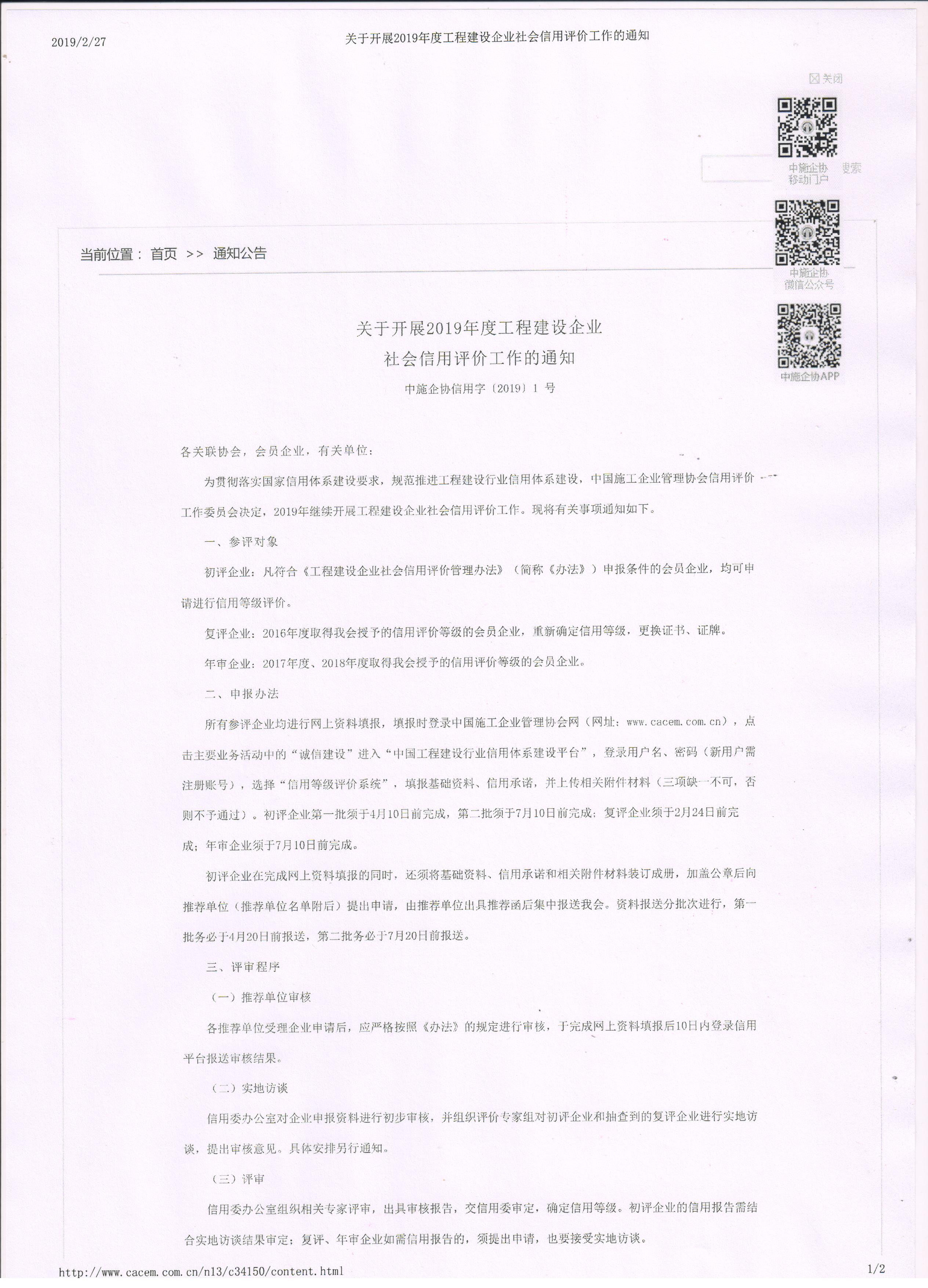 附:关于组织推荐参加2019年工程建设企业社会信用评价的通知