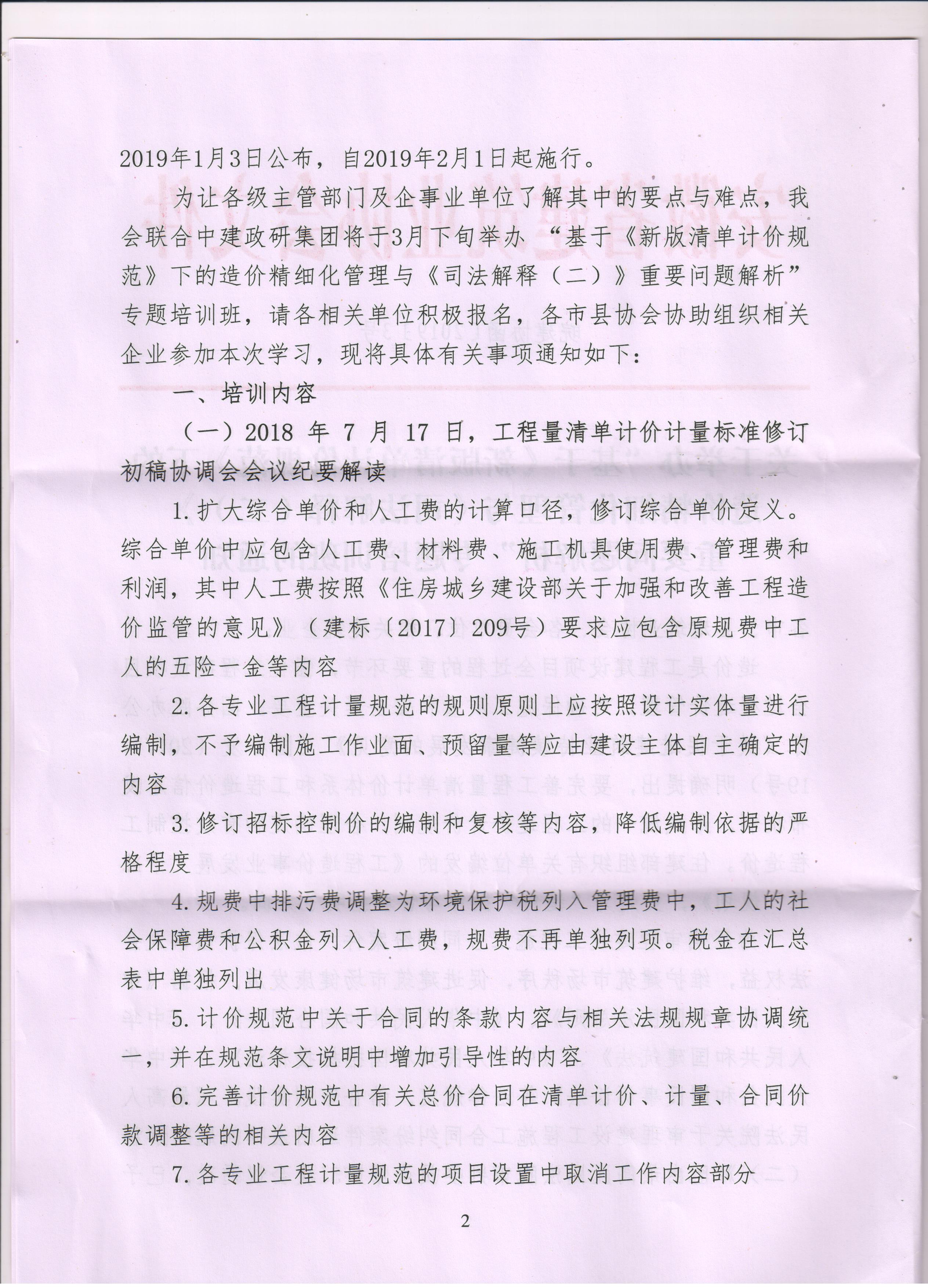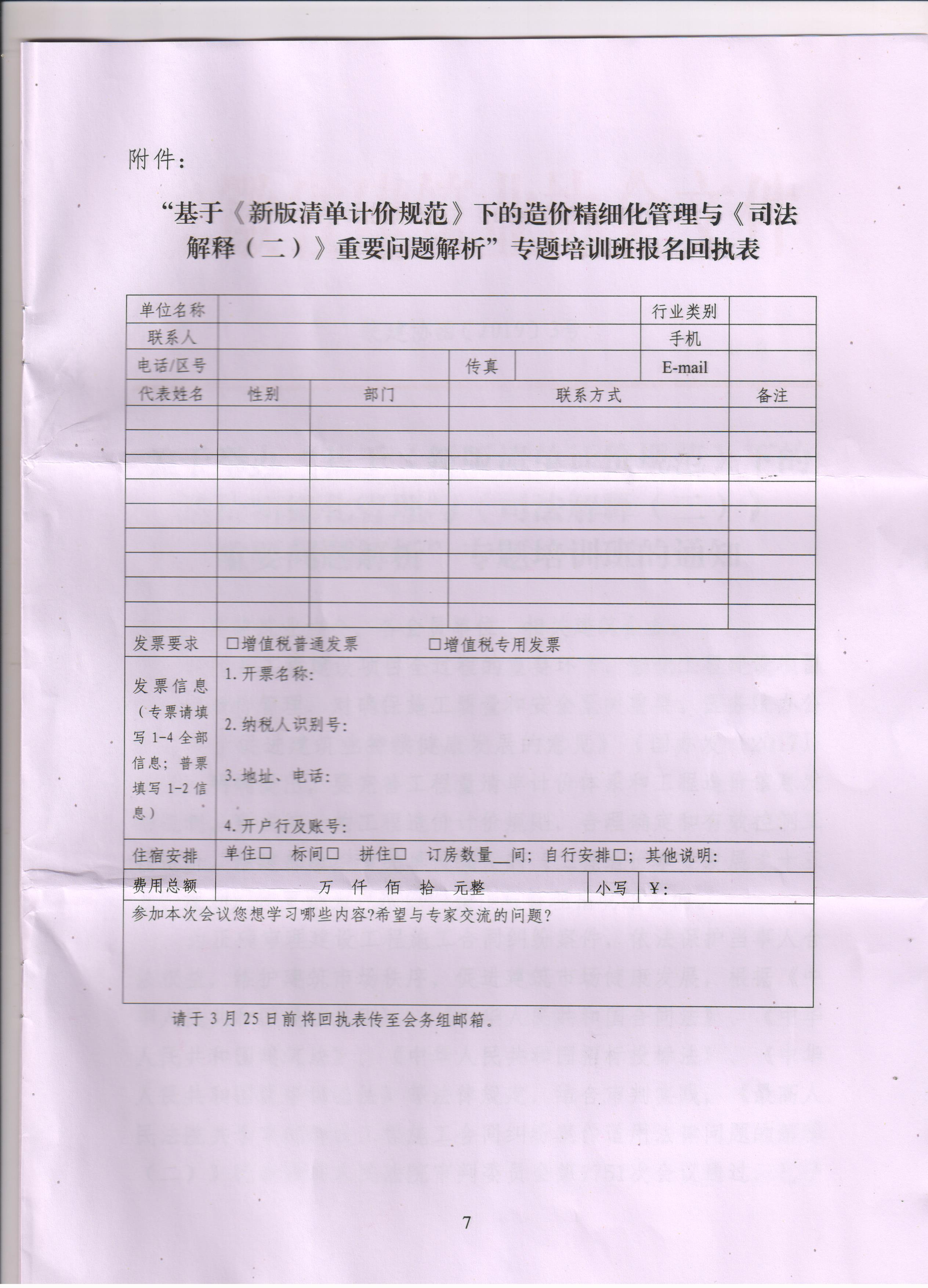 附:《关于举办“给予<新版清单计价规范>下的造价精细化管理与<司法解释(二)>重要问题解析”专题培训班的通知》