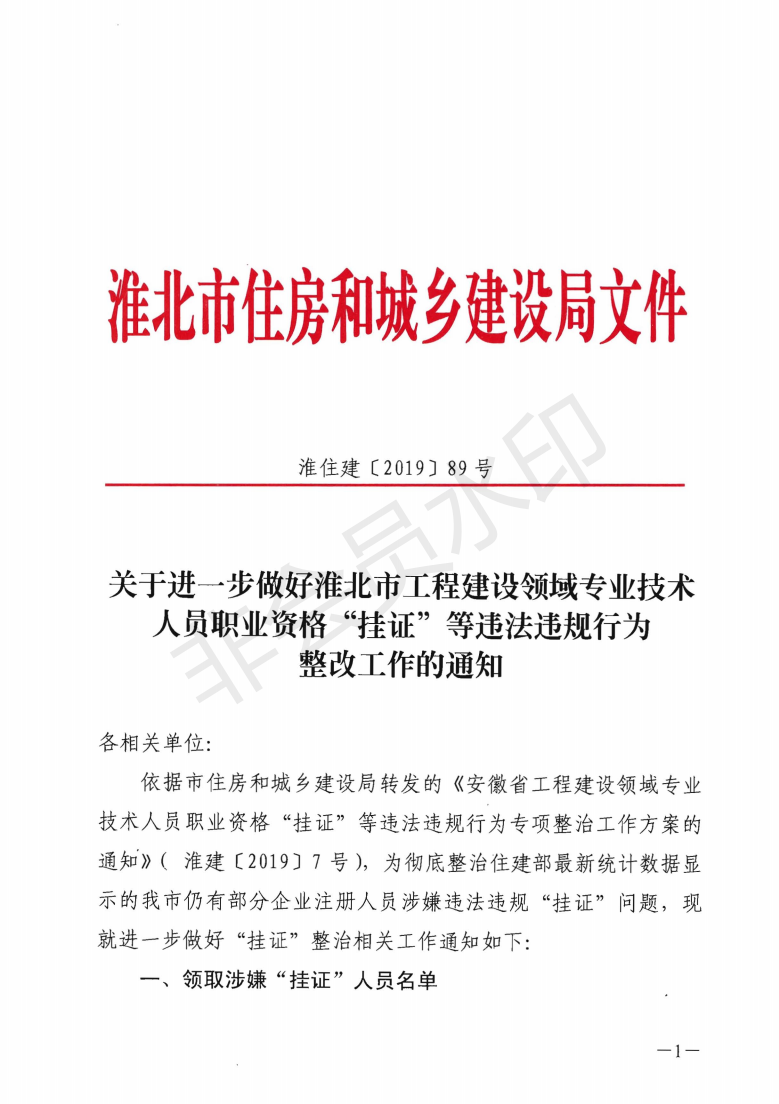 附:关于进一步做好淮北市工程建设领域专业技术人员职业资格“挂证”等违法违规行为整改工作的通知
