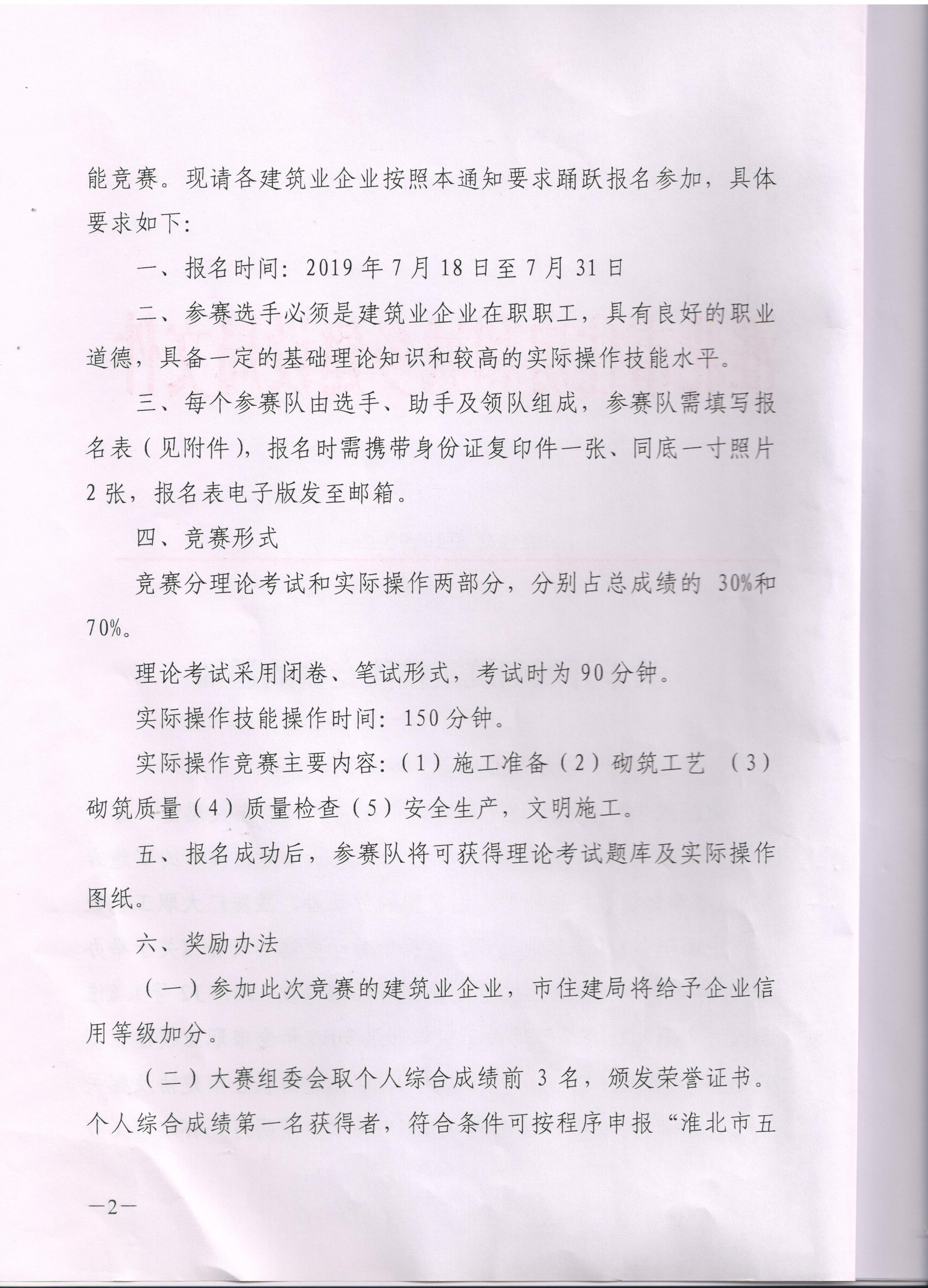 附:关于开展砌筑工技能竞赛的通知