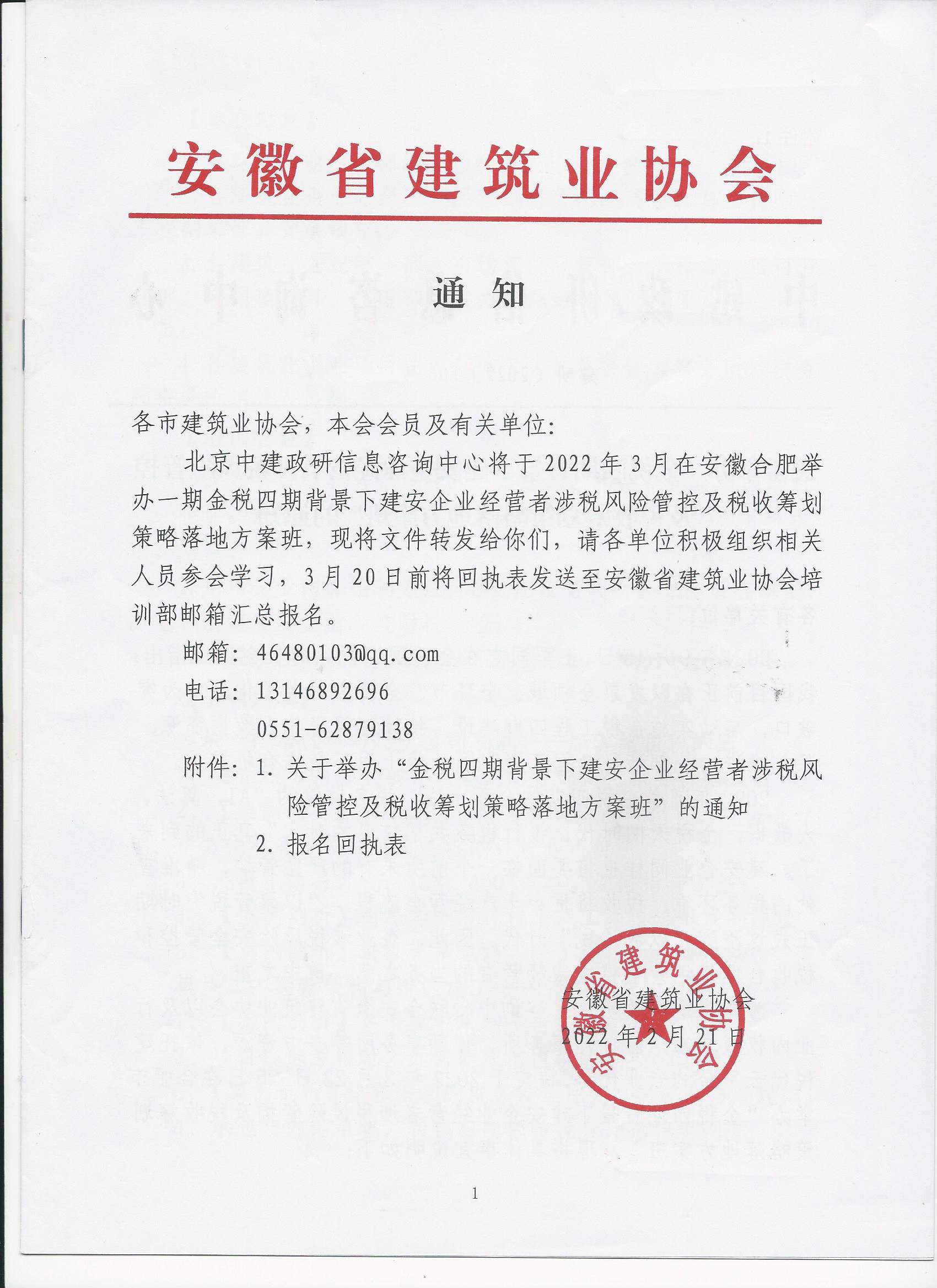 各会员单位: 现将安徽省建筑业协会的通知转达给大家,请有需要的单位按照通知的要求报名参加。