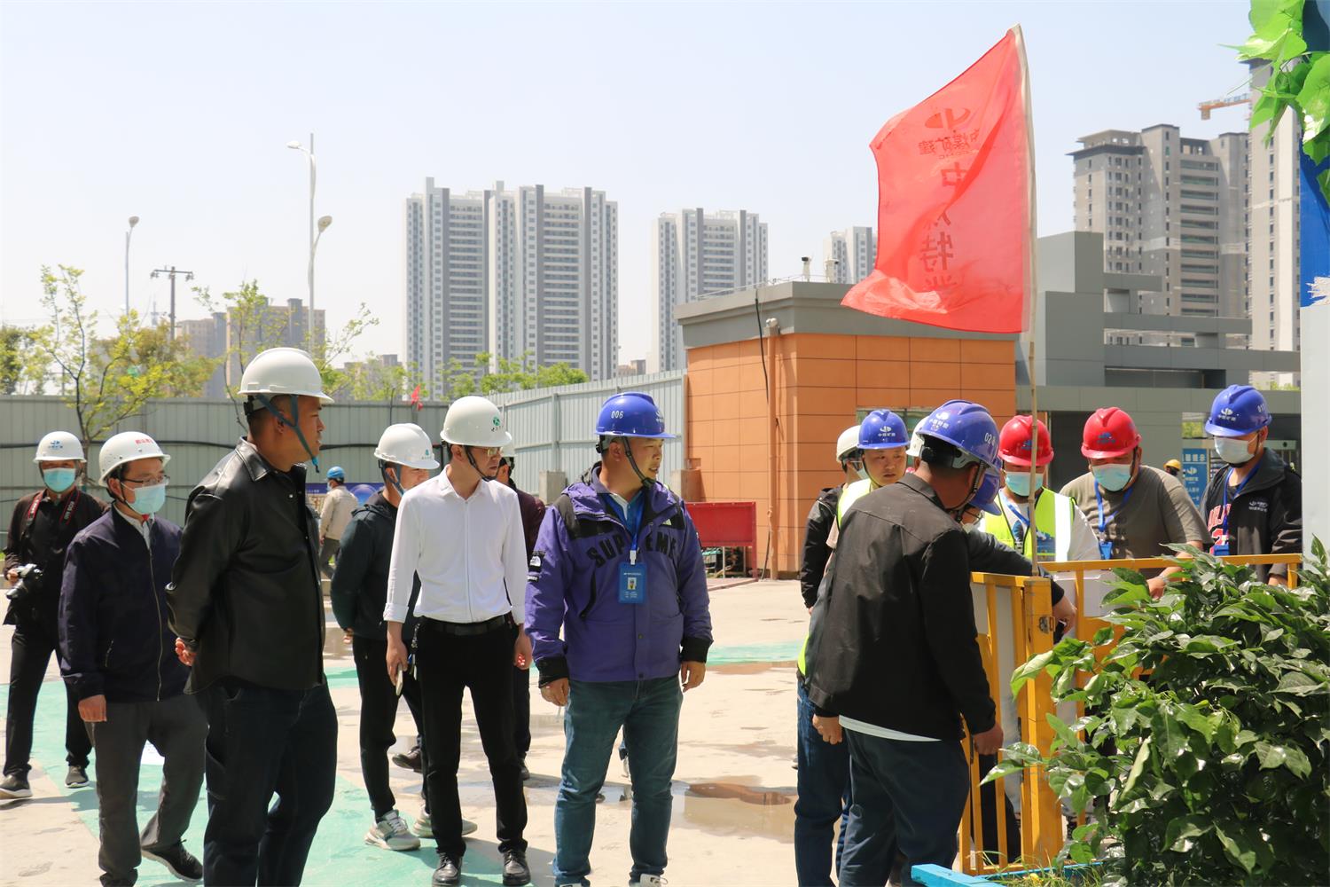 通过验评,专家们认为两个项目的施工现场干净整洁、防护严密、标识标牌醒目美观,安全宣传氛围浓厚;大门出入口设置了实名制门禁管控,防疫自动测温检测设施;现场普遍采取了节水、节材、节能、节地等措施,文明施工成效显著;使用了太阳能节能灯具,设置了自动冲洗平台、扬尘和噪声在线监控设备、喷淋、洒水车、雾炮机等扬尘防治设施,施工道路硬化畅通;现场材料、器具堆放整齐,临时布置规整有序,安全防护规范有效,基本实现了规范化、定型化。