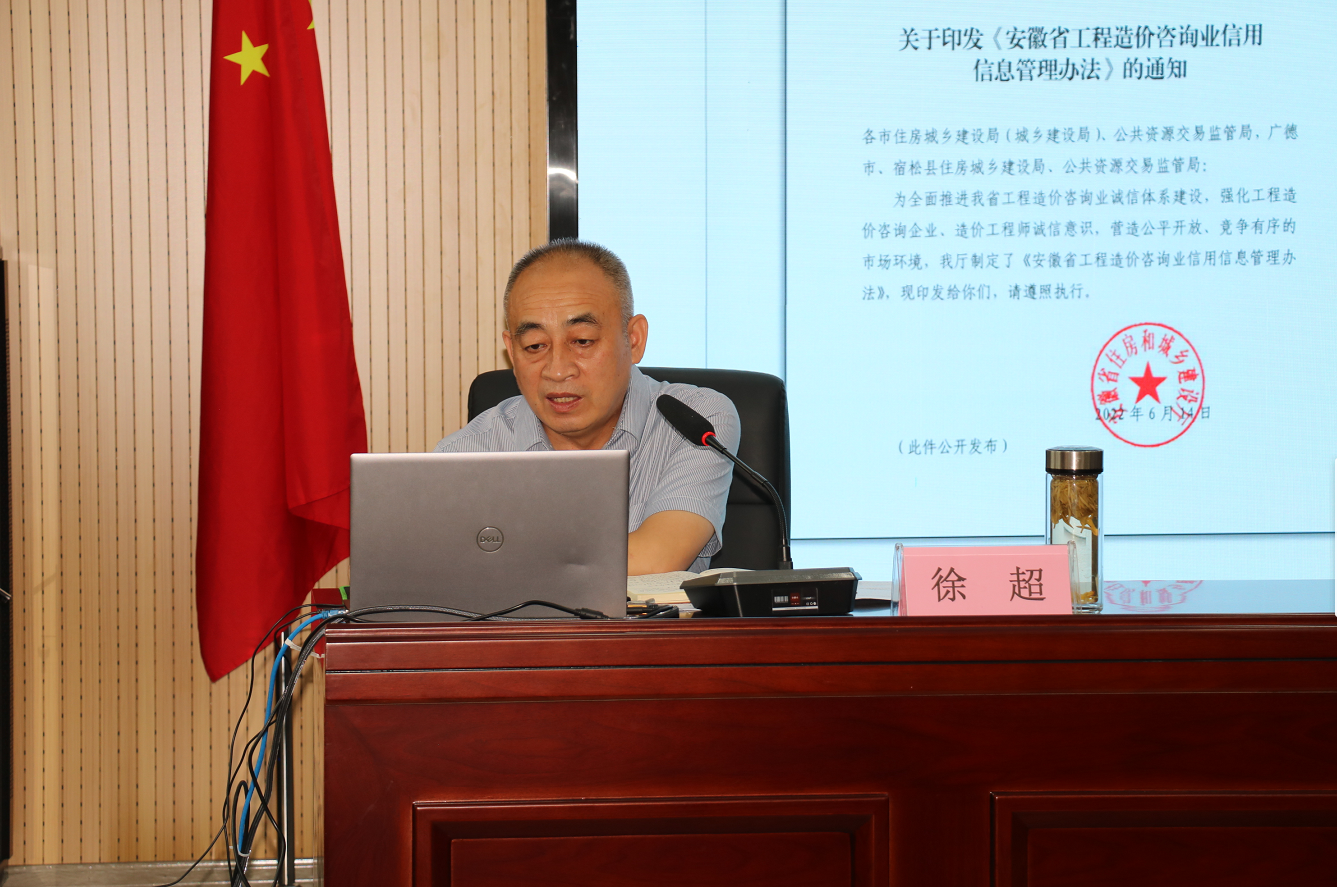 本次宣贯会由淮北市建管处定额站站长徐超主持。同时徐超站长对《安徽省工程造价咨询业信用信息管理办法》涉及的内容、适用范围、实施的注意事项等进行了详细解读;讲解内容深入浅出,通俗易懂,参会人员深受启发。